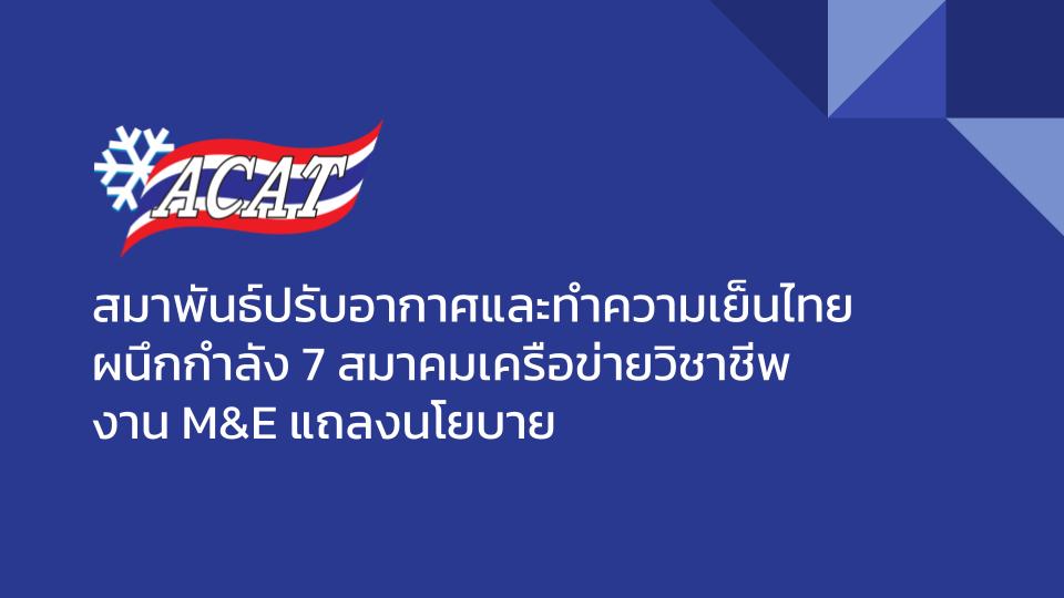 สมาพันธ์ปรับอากาศและทำความเย็นไทยผนึกกำลัง 7 สมาคมเครือข่ายวิชาชีพงาน M&E แถลงนโยบาย